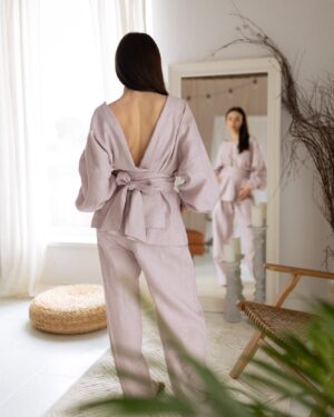CLEO Lniana bluzka z wiązaniem na plecach- Cinamonne Lady